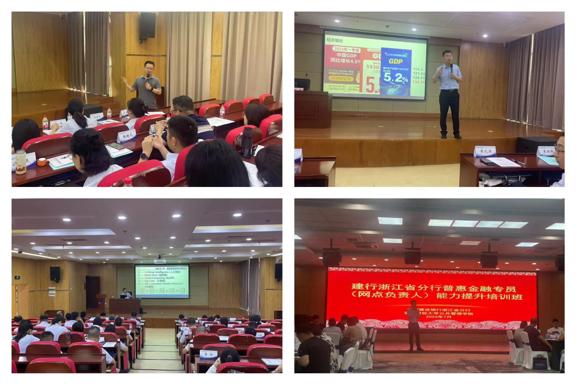 知名专家教授和建行浙江省分行业务专家,开设了有关人工智能、数字金融、宏观经济金融形势以及普惠金融业务等方面的专题讲座。培训课程设计紧凑、形式多样、针对性强,培训内容涵盖了行业发展趋势,当前热门话题以及业务难点重点问题分析。通过本次培训,充分激发了学员们的改革创新精神,有效提升普惠金融专员队伍的综合素质和能力。相信通过此次培训,学员们能更好地提升自身的工作水平,以专业化和硬实力应对新挑战、开创新局面,共同推动银行事业高质量发展。