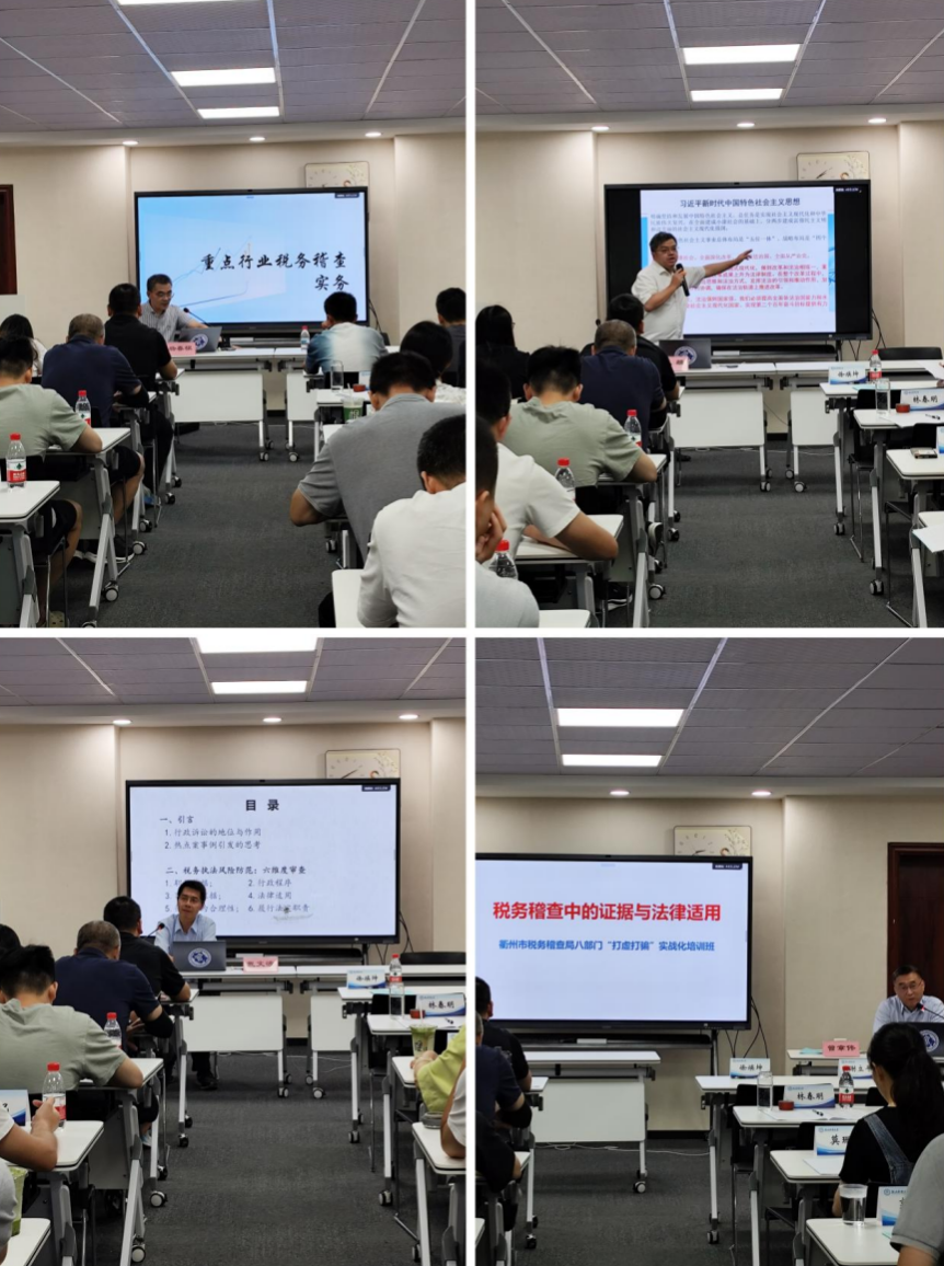 、省高院等院校和实务部门的专家学者授课,内容涵盖了党性教育、财税改革、智慧税务、危机管理、稽查实务、法律风险防控等多个关键领域,实现了理论与实战的深度融合。通过一系列专题讲座和互动教学,学员们对当前税务工作的复杂性和挑战性有了更加深刻的理解,提升了专业技能和知识水平,还增强了职业素养和团队协作精神。