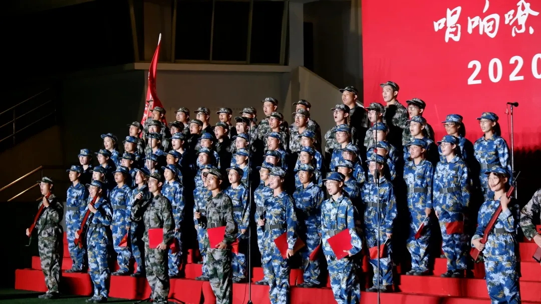 在一天天的军训中,不知不觉来到了九月。在九月的第一天夜晚,全体20级军训学生聚集在操场,参加今晚的军歌嘹亮之夜。伟大历程,初心不忘。