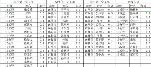 三等奖:1号(学生第一党支部 吴晨曦 王静怡)、18号(19城建一班 杨彬彬)、21号(学生第一党支部 郁康杰 张辉)