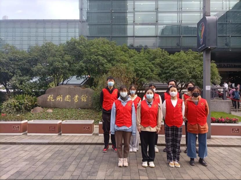 的志愿者们也换上了鲜红的志愿者服装,在这个周六来到了杭州图书馆展开志愿活动。
