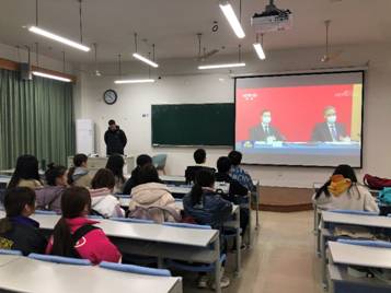 各党支部、团支部、学生会等开展了丰富多样的学习教育活动,开展“学‘两会’精神,话青年担当”主题党日活动,同学们们在学习之余,还通过电视、互联网、手机等网络媒体观看“两会”直播盛况,持续关注“两会”热点,探讨“两会”焦点。