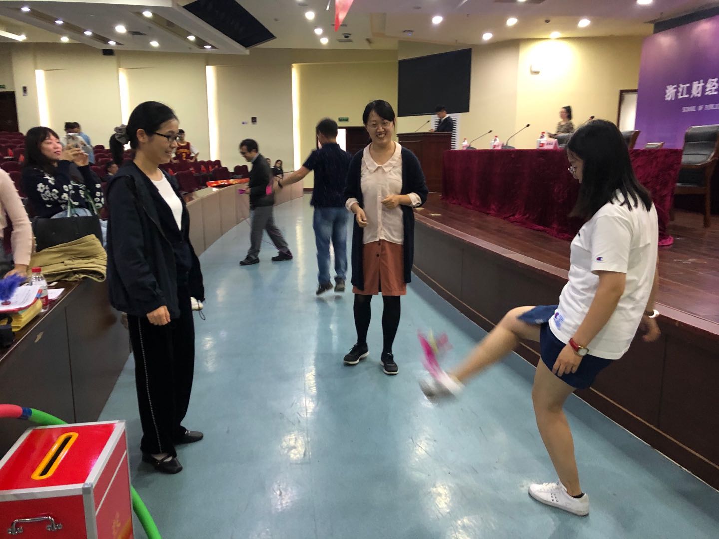 分工会于10月20日下午组织开展“幸福公管、健康生活” 系列活动之第四期活动。本次趣味活动设有跳绳、呼啦圈、踢毽子三个项目。