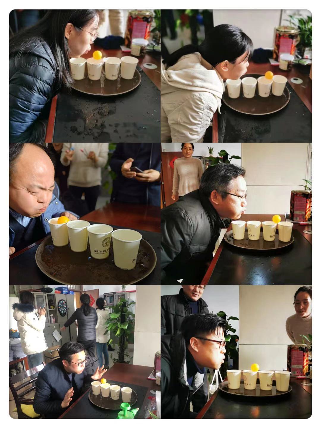 次系列游园活动丰富多彩,游园活动分四个办公室场地,517A行政办公室:夹弹珠;517B教学办公室:吹乒乓球519学生工作办公室:呼啦圈;514社会合作办公室:扔飞镖。活动现场轻松愉快,笑声此起彼伏。