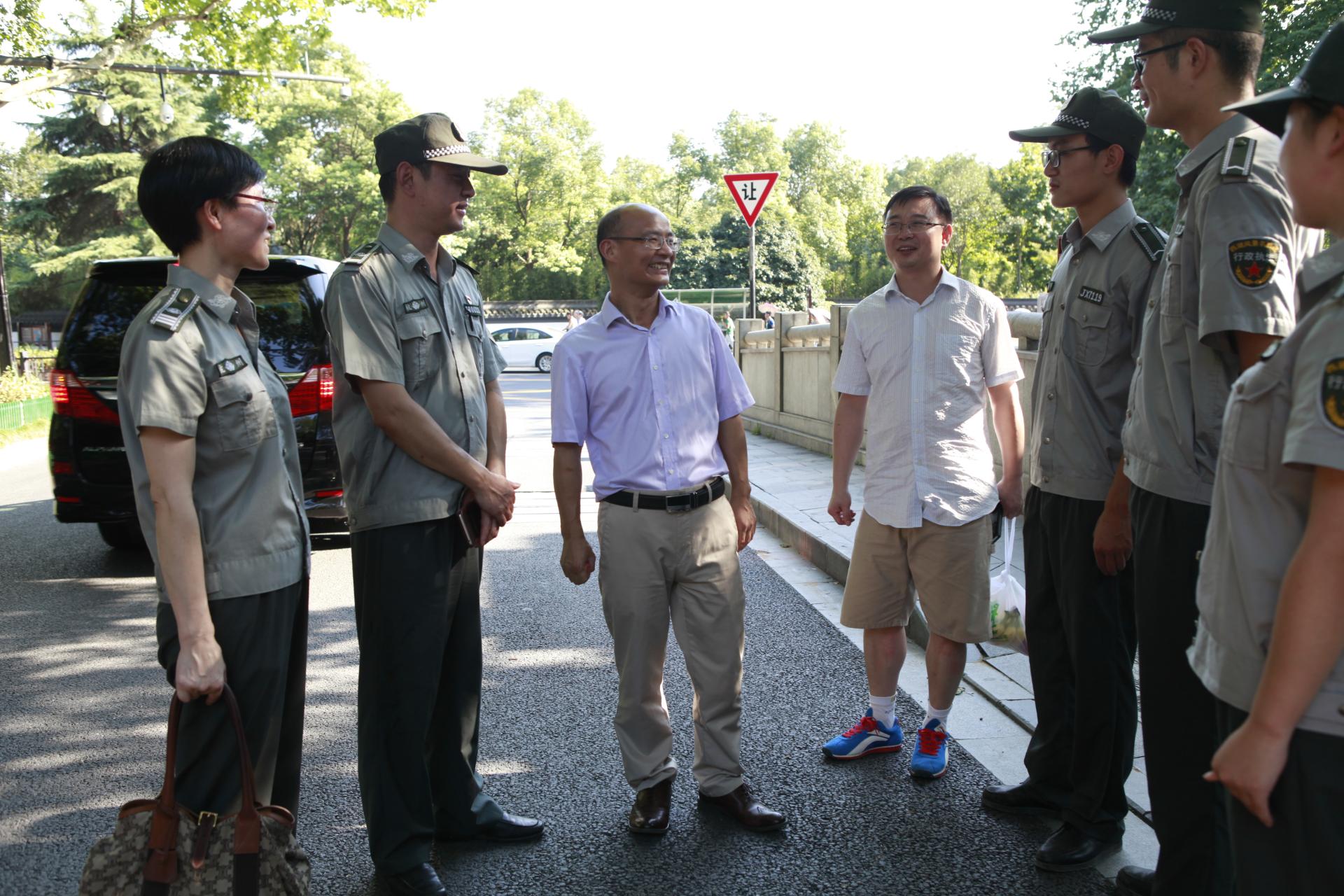 城市管理系主任杨雪锋的陪同下,前往西湖景区看望慰问了参加服务G20峰会保障任务的城市管理专业实习生。