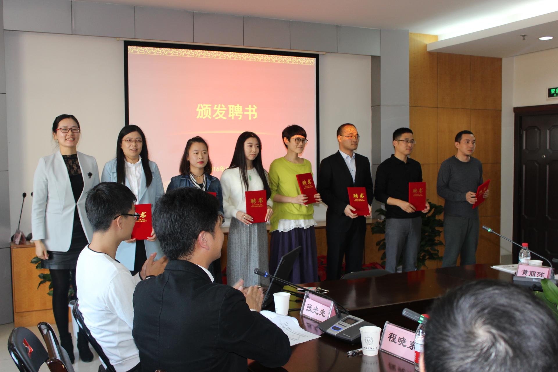 领导王直民、裴志军共同为校友会副秘书长颁发聘书。