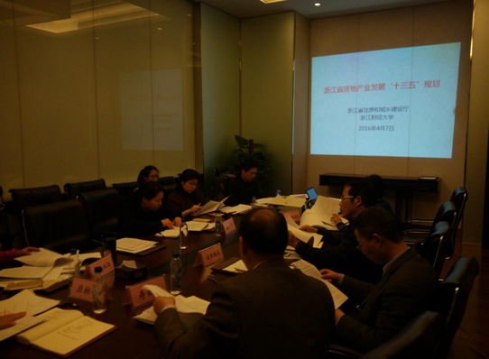 承担,目前已经基本完成规划编制工作。王直民老师代表课题组向相关厅局及处室负责人简要介绍了规划编制情况,与会领导对课题组工作给予了充分肯定,认为本规划框架合理、内容全面、重点突出、针对性强,对浙江省“十三五”期间的房地产业发展具有很强的指导与引领作用。