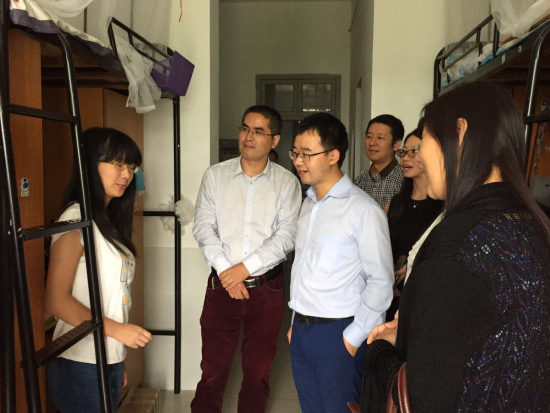 走进干净整洁的寝室,各位老师首先进行了自我介绍,然后亲切询问了同学的家乡,并了解她们在杭州的生活,包括衣食住行等各方面是否都习惯,知晓部分同学来自较远的贵州、云南或青海等地区,便更为关切地叮嘱。同时,也督促同学认真对待学习,提高效率,尤其是第一学年的过渡期,尽快地去适应。当然在学习的同时,也要积极参与社团或实践活动,全面提高个人素质。