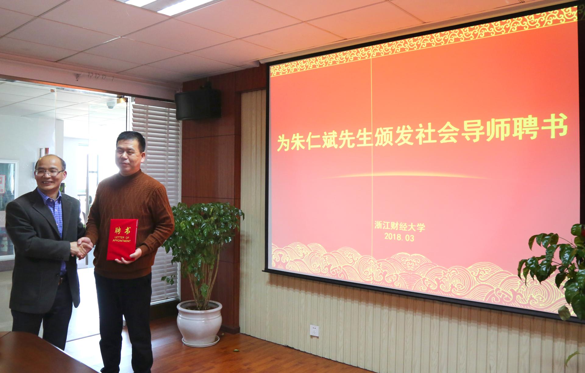 与安吉县递铺街道鲁家村战略合作协议》,郭院长为朱书记颁发了社会导师聘书,bbin