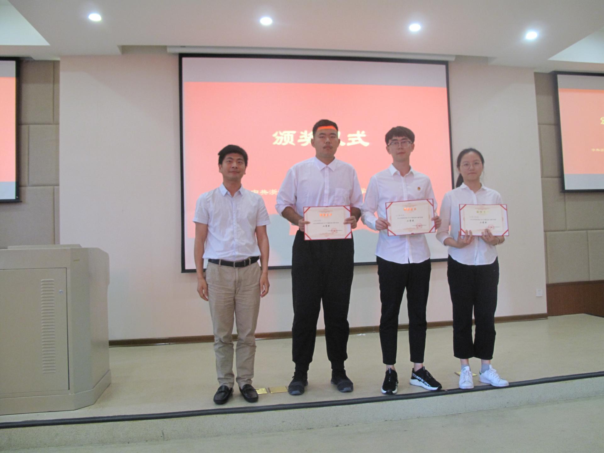 楼208组织开展了以“弘扬红船精神,走好新时代的长征路”为主题的微型党课大赛。院党委书记沈晓敏,院党委副书记程晓东、教工第二党支部书记韦晓蓓老师、教工第五党支部书记倪建伟老师、研究生党支部书记郭玉飞老师老师、学生第三党支部书记边华菁老师出席本次比赛并担任评委。