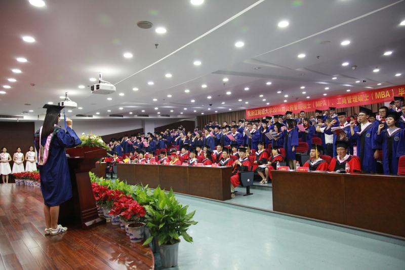 2018届MPA全体毕业生进行了毕业宣誓,财大学子告别母校,走向社会要铭记浙财校训,谨遵师长教诲,不忘初心,牢记使命,坚定理想信念,勇担时代重任,践行“精管为公、善治天下”的使命,为实现中华民族伟大复兴中国梦而努力奋斗。