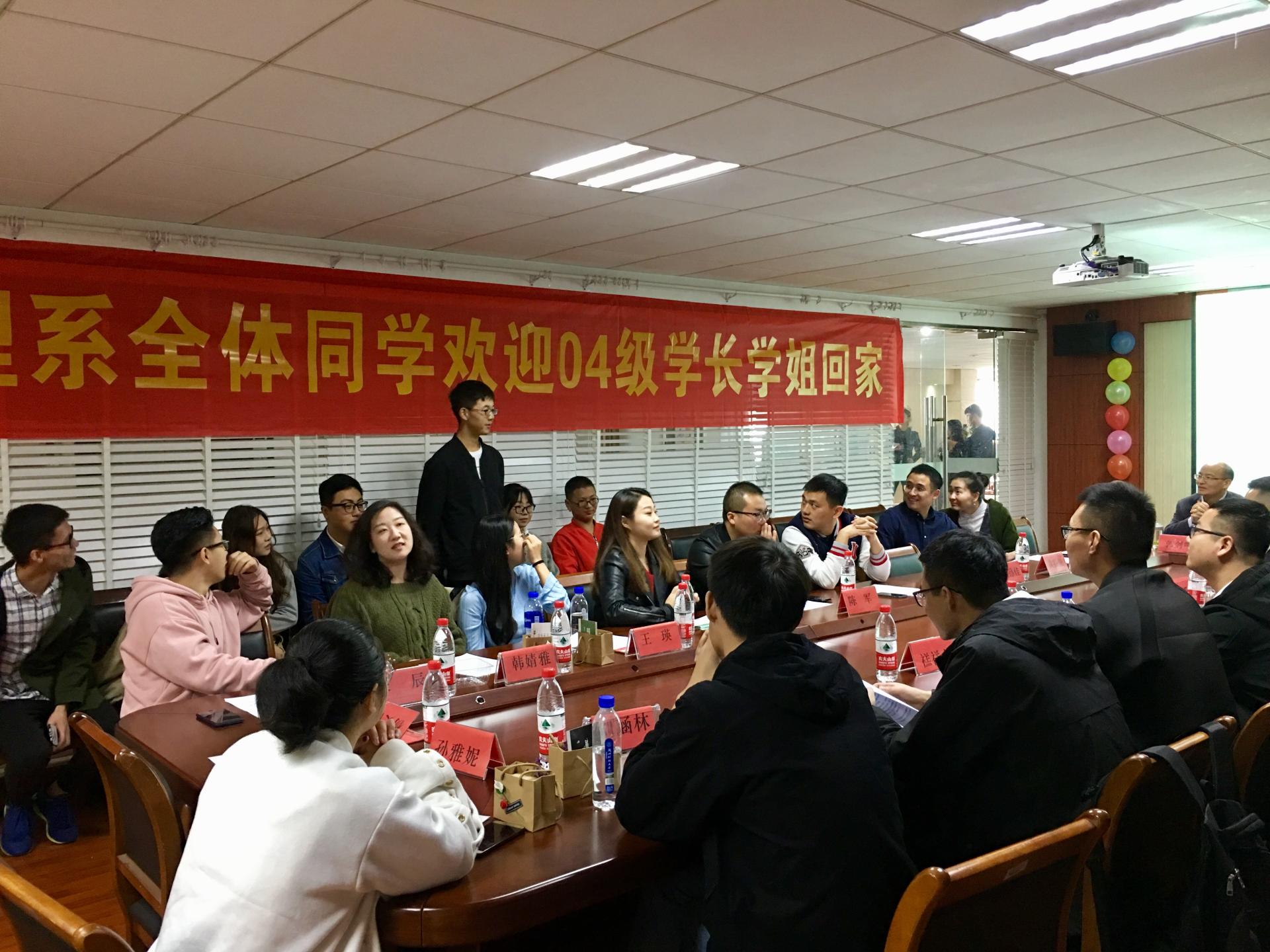表示祝贺,行政管理系教师与校友们进行了座谈交流。理事会议由行管系系主任潘迎春主持。