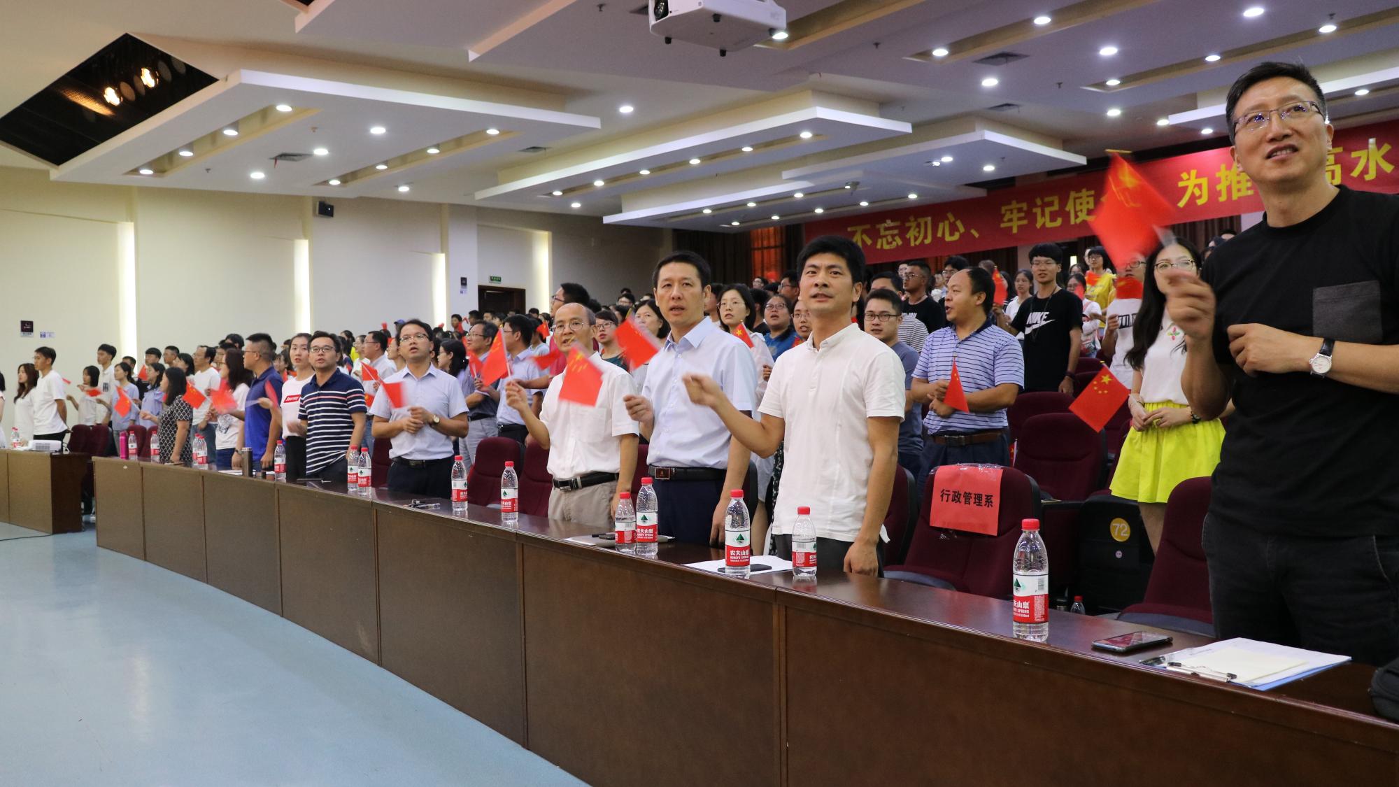 全体师生高举右手、庄严宣誓,表达对不忘教育初心、牢记育人使命,培养德智体美劳全面发展的卓越公务人才的职责担当;表达践行校训、院训精神,奋发成为卓越公务人才,为实现伟大中国梦贡献青春力量的决心。共誓大会在全体师生“歌唱祖国”的合唱声中圆满结束。