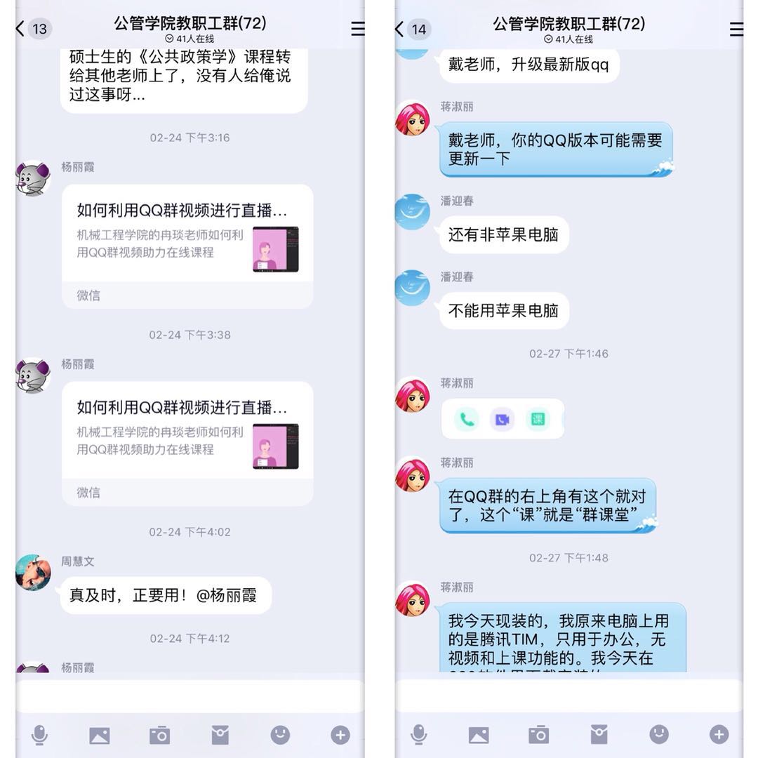 为了让学生们充分利用云端课堂提供的无限资源,以班为单位,认真组织同学们学习各种在线平台,学会使用多样化的交互方式,参与在线网络课堂。同时,教师充分利用在线教育的技术优势,增加随堂测试,学生在听课过程中积极参与、互动积极、踊跃发言,整个教学过程师生全程互动,实现了在线教育技术与教育教学过程的融合与贯通。开学第一天,很多课程得到学生的高度认可。