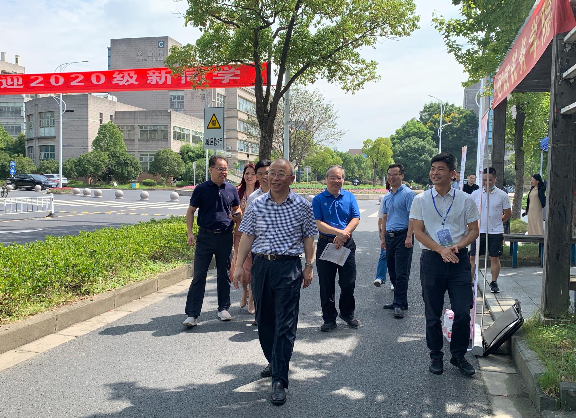 期间,校领导班子来到迎新现场检查指导,在路过bbin