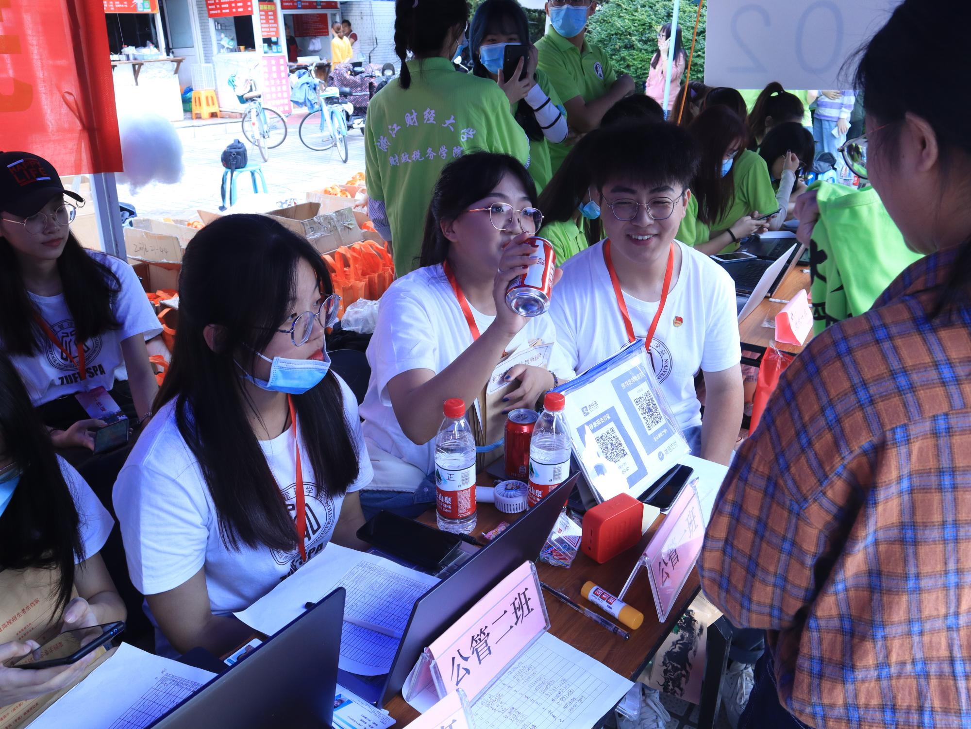 迎来了243名2020级本科新生。带班辅导员、新生班导和志愿者早早来到了迎新现场,为新生引路、讲解、办手续。别出新意的公管“小树洞”、定制版可乐,给新生了留下了难得的纪念。