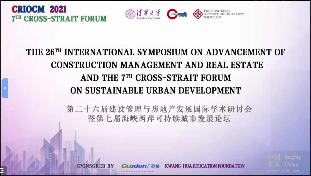 11月20日至11月21日,中华建设管理研究会(CRIOCM)与清华大学、香港理工大学联合主办的第二十六届建设管理与房地产发展国际学术研讨会(CRIOCM2021)暨第七届海峡两岸可持续城市发展论坛以线上会议的形式顺利举行,会议主题为“Innovation and Sustainability in Construction Management and Real Estate”。共有来自中国大陆、中国香港、英国、美国、澳大利亚、荷兰等地区两百多位学者参会研讨,五百多位观众收看研讨直播。bbin