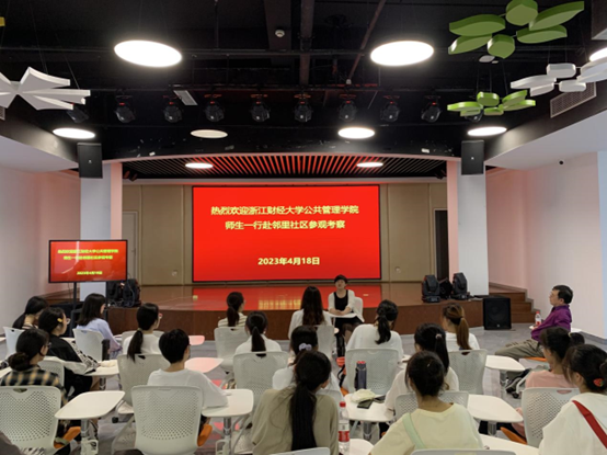 部分师生在杨雪锋教授带领下赴钱塘区白杨街道邻里社区参观学习,受到社区党支部书记张敏华的热情接待。
