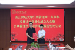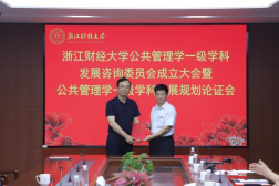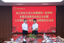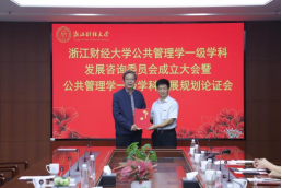 建院10年来取得的成就,向长期关心与支持公共管理学学科建设的专家表示诚挚的感谢。他表示,浙江作为“共同富裕示范区”和“重要窗口”,正奋力推进“两个先行”,新形势下公共管理学学科建设既迎来重大机遇,也面临更高要求。他指出,今天的聘书虽轻,承载的却是千钧重托,希望各位专家能以战略视野把握方向,指导我们构建具有“浙财风格”的公共管理学自主知识体系。