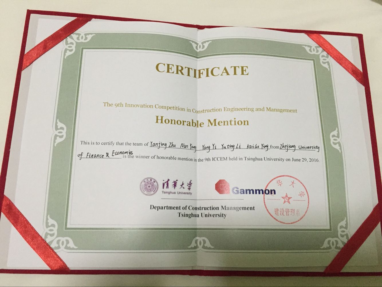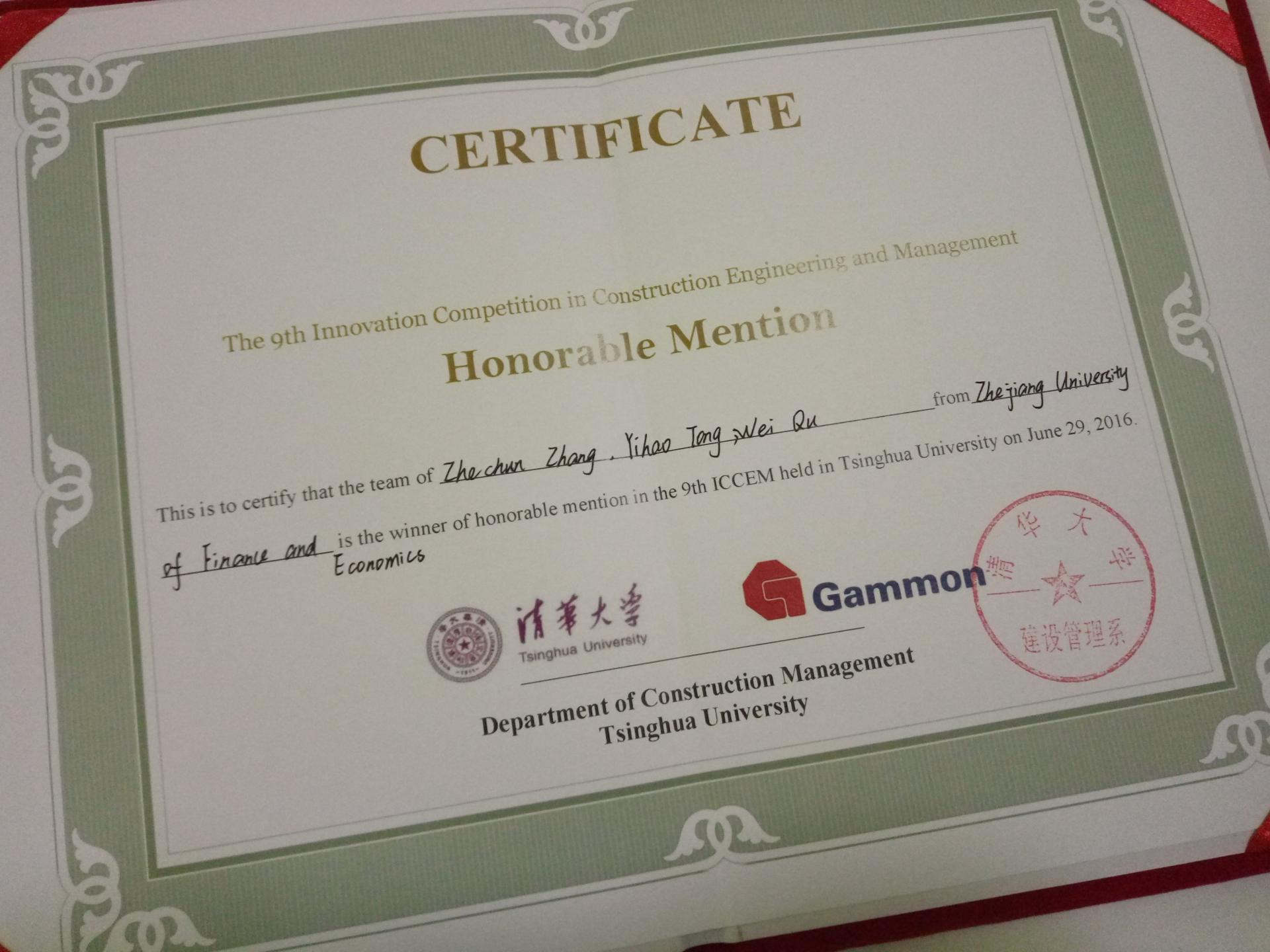 工程管理专业14级本科生朱艳婧、杨楠、易阳、李钰婷、应凯璐、张哲纯、童译皓、瞿玮等8人组成的两支队伍进入决赛,经过激烈的全英文答辩最终荣获大赛优秀奖。